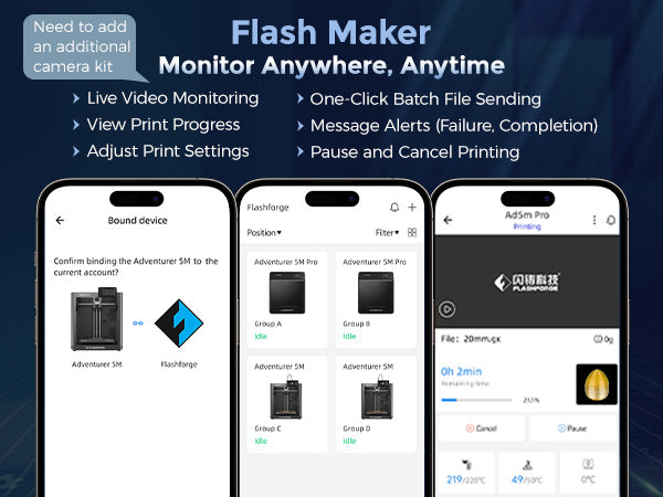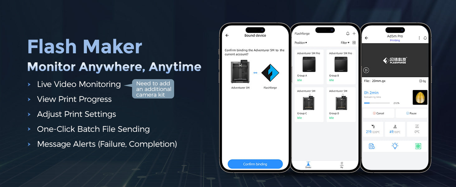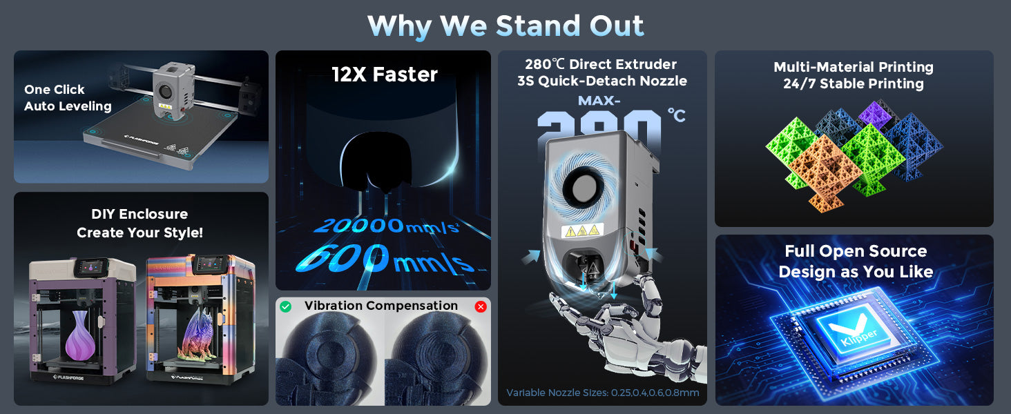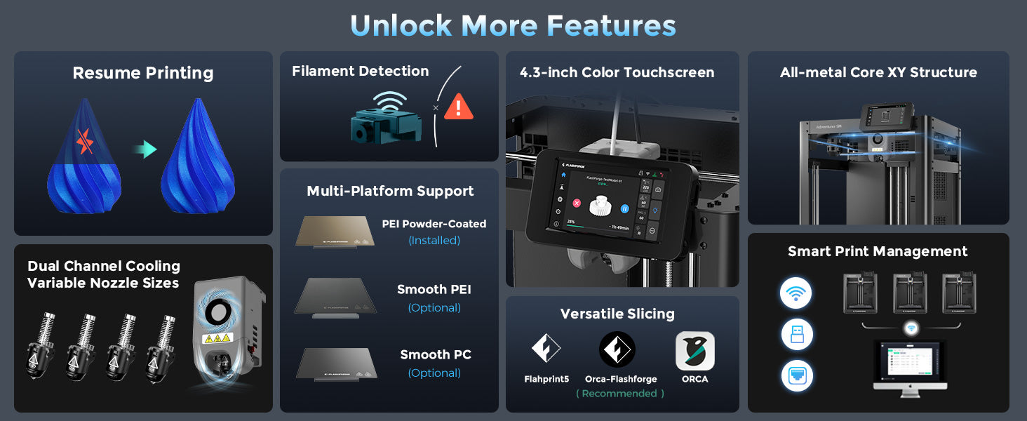 FLASHFORGE Adventurer 5M 3D Printer with Fully Auto Leveling, Max 600mm/s High Speed Printing, 280°C Direct Extruder with 3S Detachable Nozzle, CoreXY All Metal Structure, Print Size 220x220x220mm