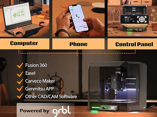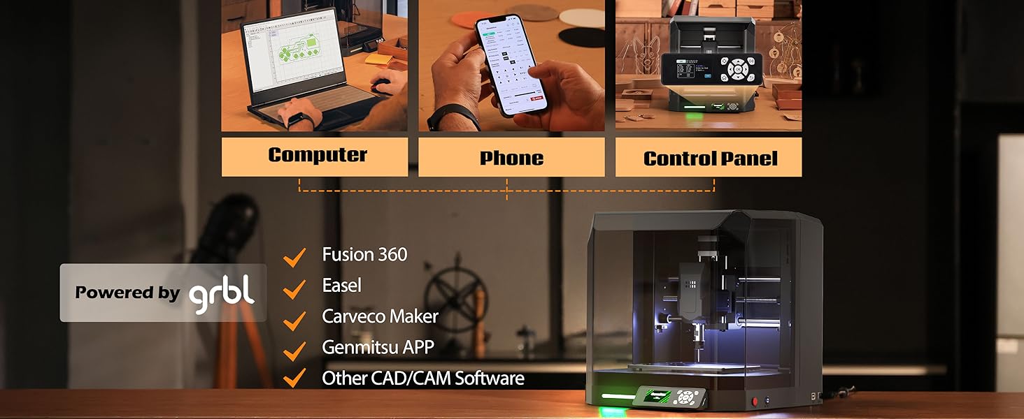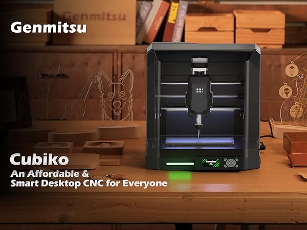 Genmitsu Cubiko CNC Router Machine with Enclosure, PCB Milling Machine, Smart Desktop CNC with Auto Z-Probing, WiFi & APP Supported, Great for Polishing, Drawing, Woodworking